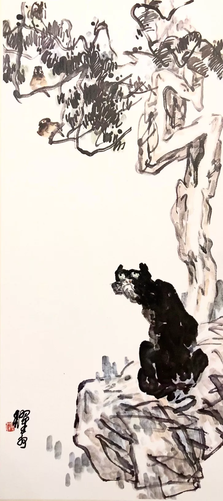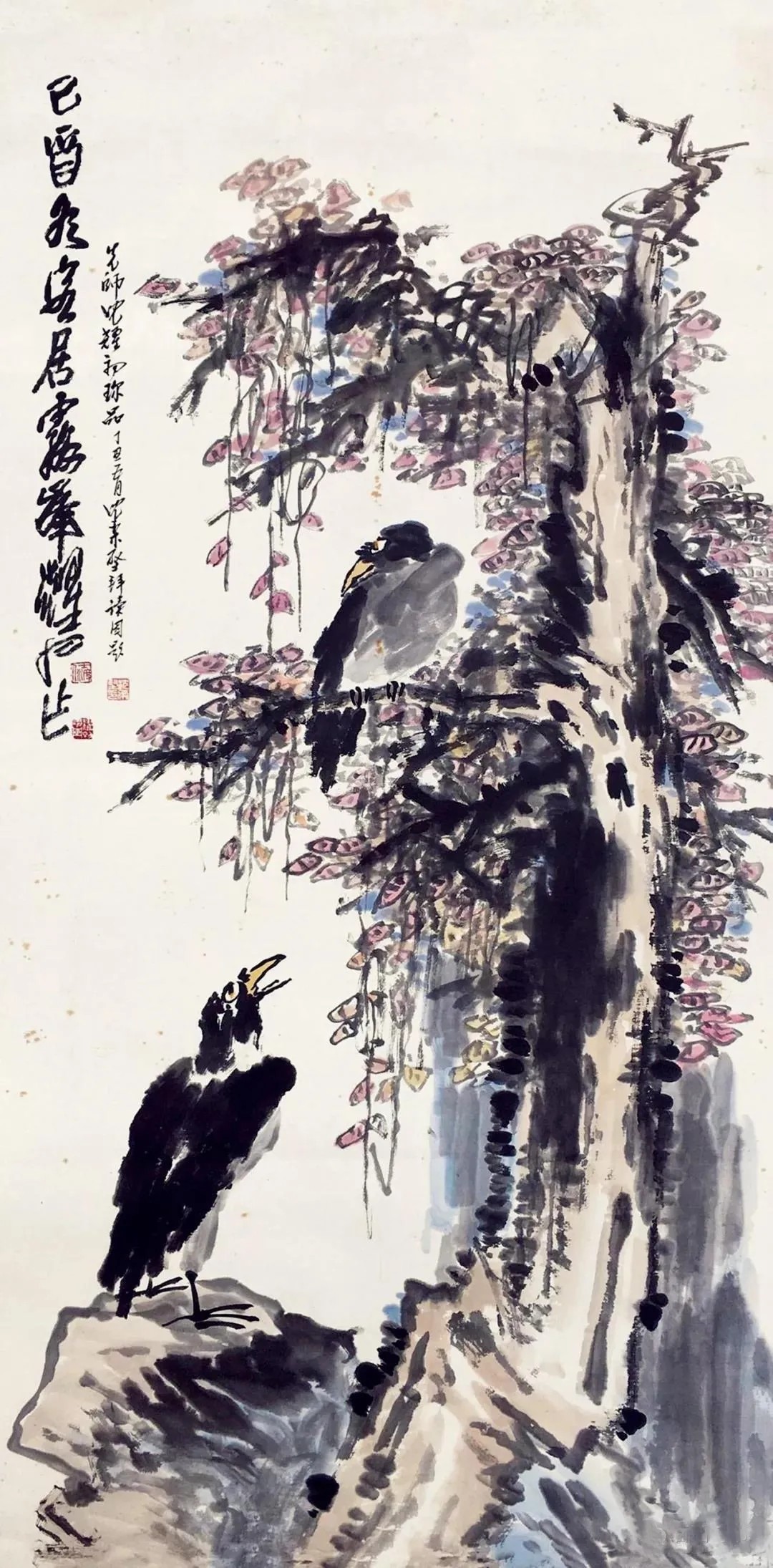 沈耀初这老先生,画画不按套路出牌!别东说念主画花鸟,发挥玄妙精细,他偏拿拙笔蘸浓墨,在宣纸上横涂竖抹,愣是把花鸟画成了“野门道”。可这“野”里,藏着股子真特性。