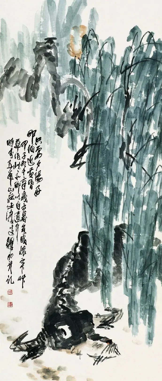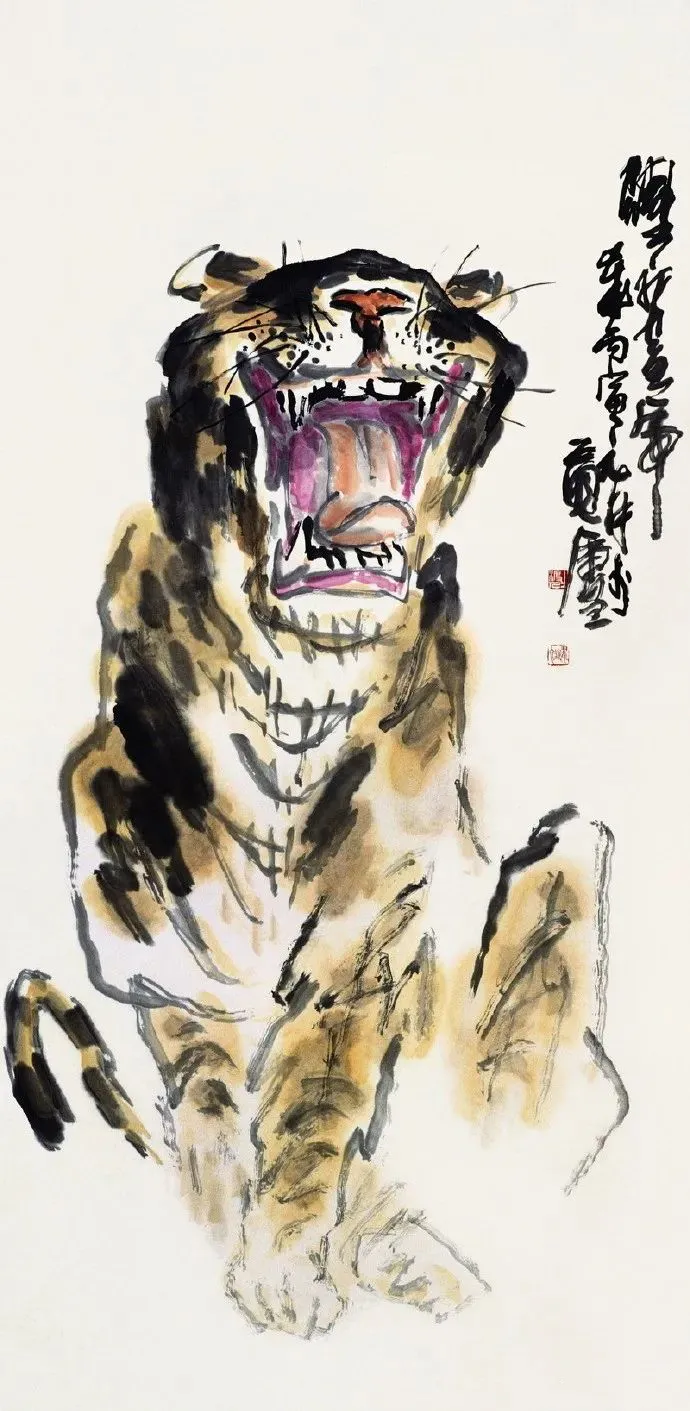 沈老先生这画,是“写”出来的,不是“画”出来的。他笔下的线条,狠恶有劲,像老农扶犁深耕,凝重中透着人命韧力。墨色油腻深千里,仿佛饱含半世纪饱经世故,每一笔王人是岁月千里浮的图章。