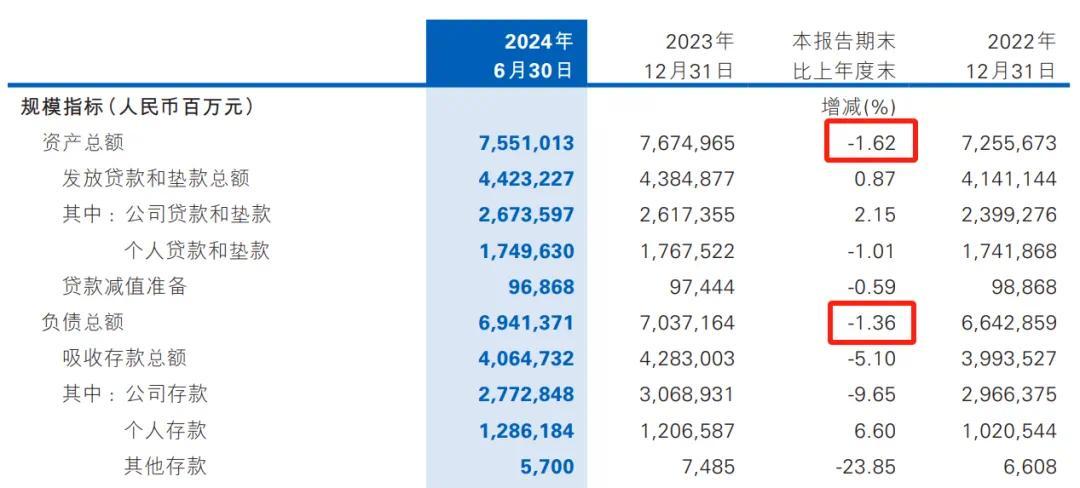 截止上半年末,民生银行财富总数7.55万亿、负债总数6.94万亿,分辩比上年末下滑1.62%、1.36%,成为本年首家缩表的上市银行,亦然该行2021年同期以来的第二次缩表。尤其二季度,其以2.28%的环比降幅成为财富收缩最快的上市银行。
