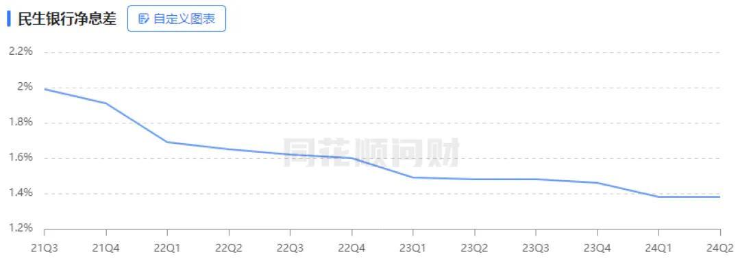 一方面是民生银行管不住净息差。2020年同期,民生银行净息差还高达2.11%,2024年上半年唯有1.38%了,盈利空间是一年不如一年。
